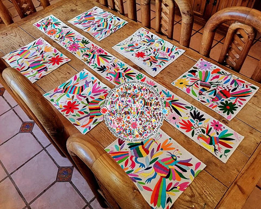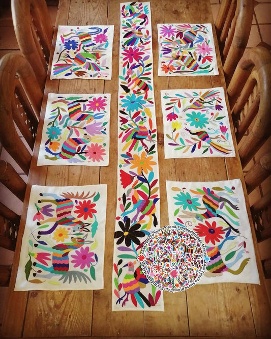 Juego de camino de mesa con 6 manteles bordado Otomí