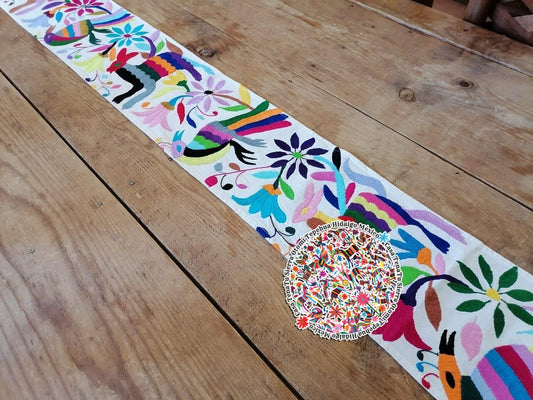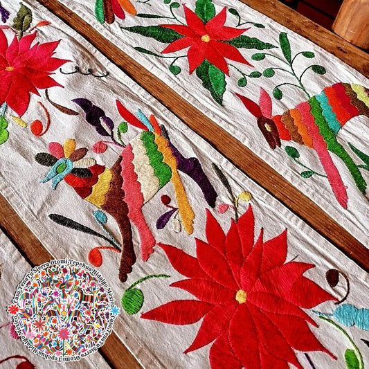 Camino de mesa bordado a mano Otomí "DISEÑOS SIMILARES DISPONIBLES"