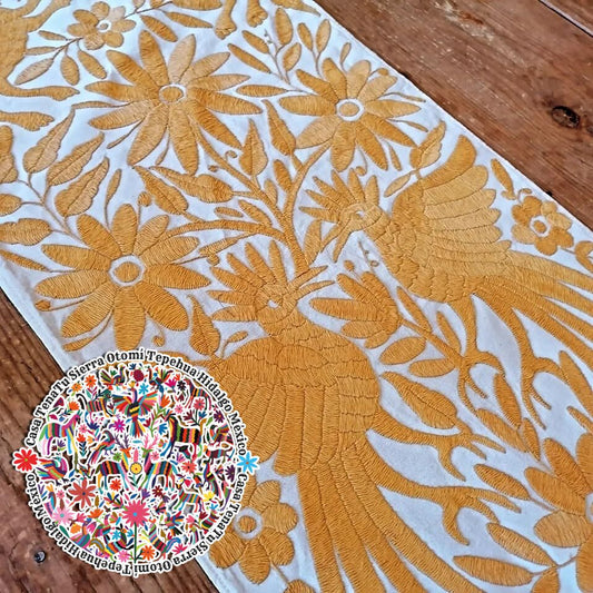 Camino de mesa Otomí en hilos amarillo miel "bajo pedido".