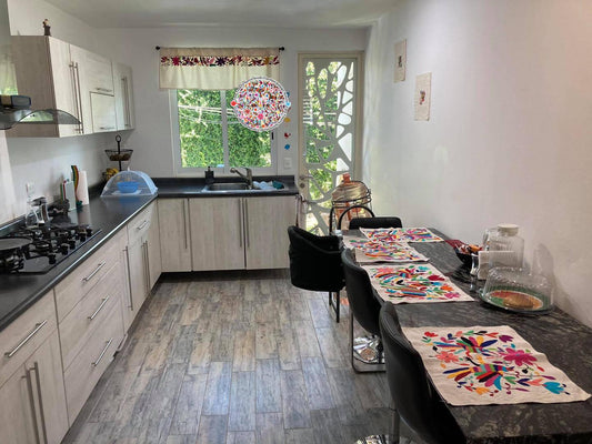 Cortina para cocina copete bordado Otomí multicolor "existencia similar"