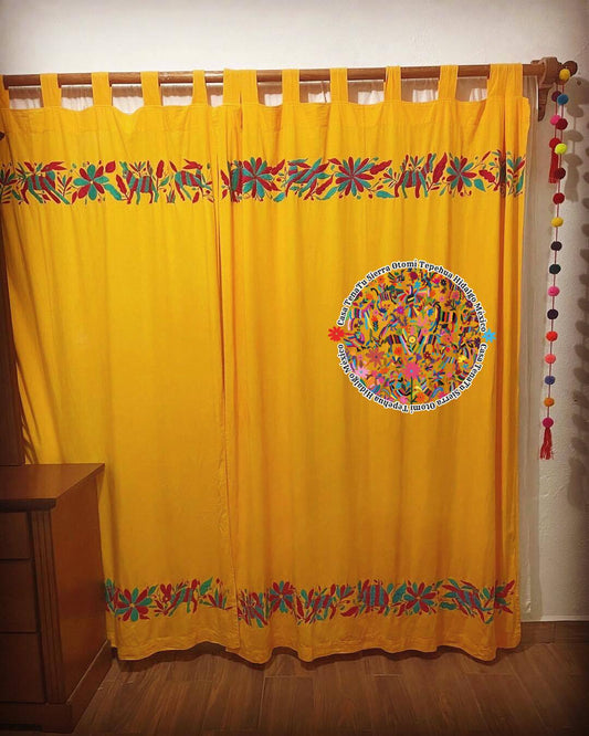 Par de cortinas amarillas doble cenefa Otomí (sobre pedido)
