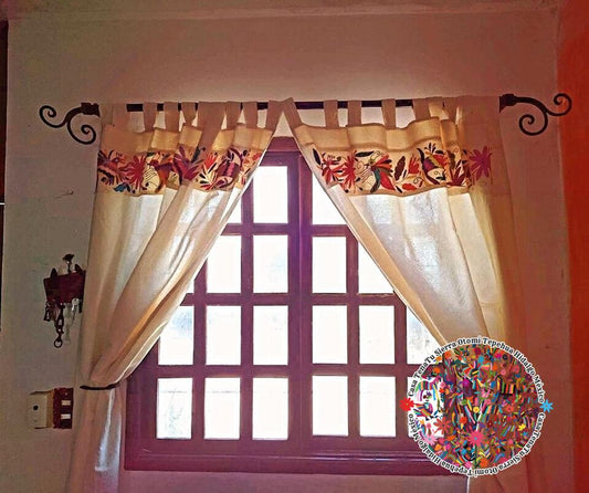 Juego de cortinas bordado Otomí elaboradas de manta natural (sobre pedido)