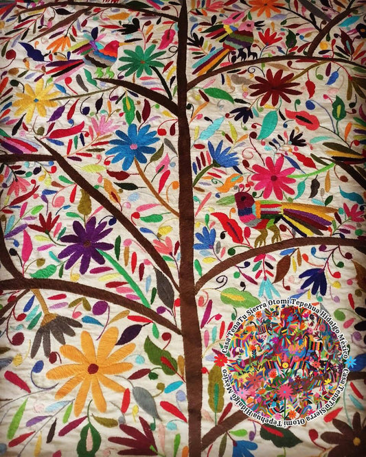 Lienzo árbol de la vida multicolor tupido Otomí (SOBRE PEDIDO)