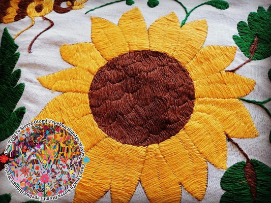 Lienzo bordado a mano Otomí Girasoles "bajo pedido"
