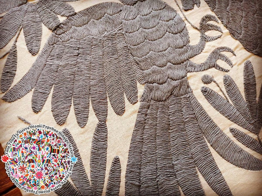 Lienzo Otomí 44 x 34 cm bordado a mano en hilos grises "existencias similares"