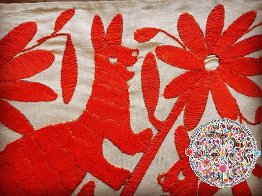 Lienzo naranja Otomí bordado totalmente a mano 44 x 34 cm "existencias similares"