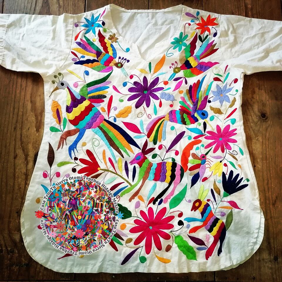 Blusón de talla XL bordado a mano Otomí multicolor (bajo pedido)