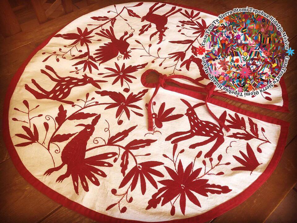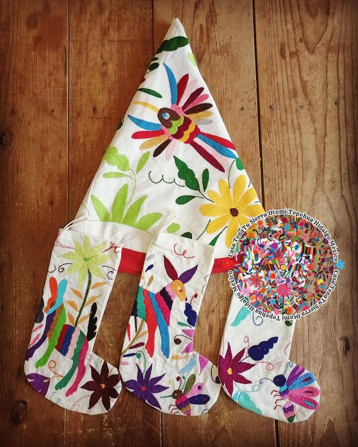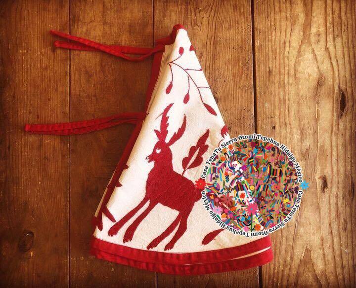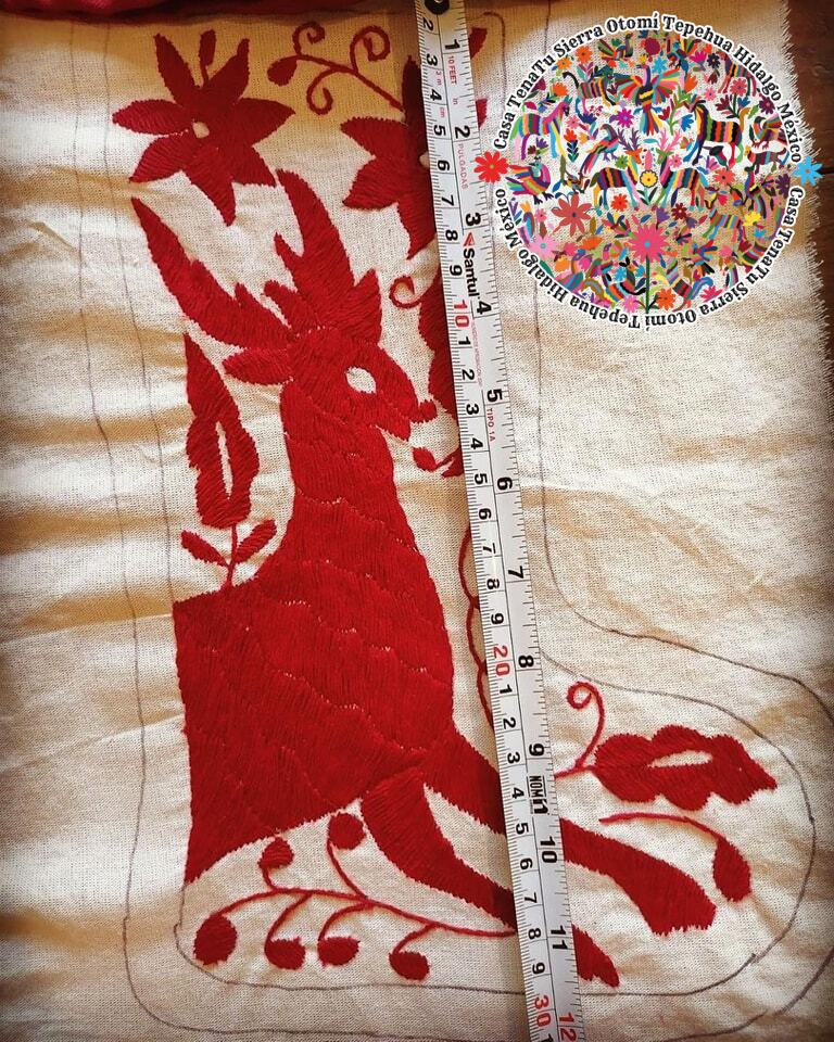 Combo navideño Otomí bordado en hilos rojo