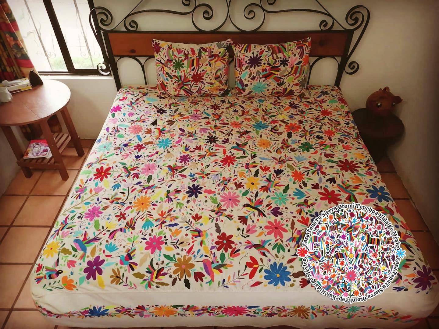 Cubrecama Otomí King size con sin plisado olán (sobre pedido)
